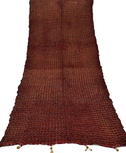 Women Indian Vintage Maroon Dupatta Long Stole Pure silk hand Woven Bandhani Dupatta Veil Scarves soft Boho Wrap Zari