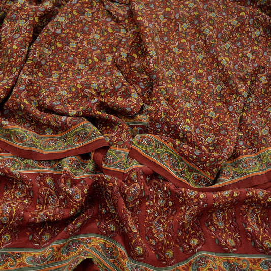Women Indian Vintage Brown Dupatta Long Stole Pure Crepe silk Printed Dupatta Veil Scarves soft Boho Wrap Dressmaking Paisley