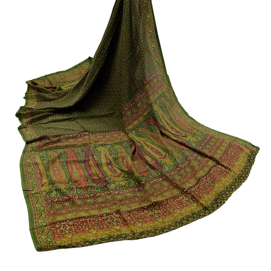 Women Indian Vintage Green Dupatta Long Stole Pure Crepe silk Printed Dupatta Veil Scarves soft Boho Wrap Dressmaking Paisley