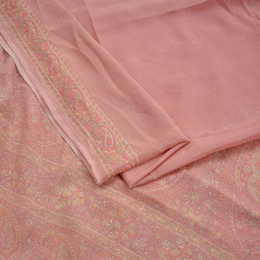 Women Indian Vintage Dupatta Pink & Beige Long Stole Pure silk Printed Dupatta Veil Scarves soft Boho Wrap Dressmaking Floral Design
