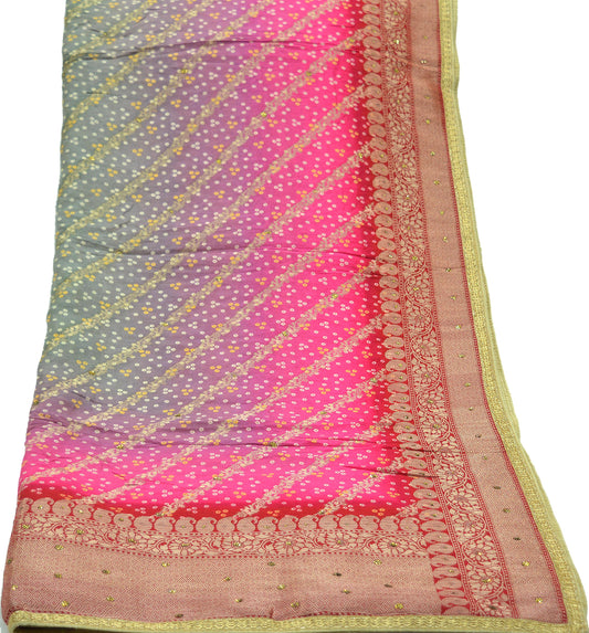 Women Indian Vintage Pink & Black Dupatta Long Stole Pure silk Bandhani Dupatta Veil Scarves soft Boho Wrap