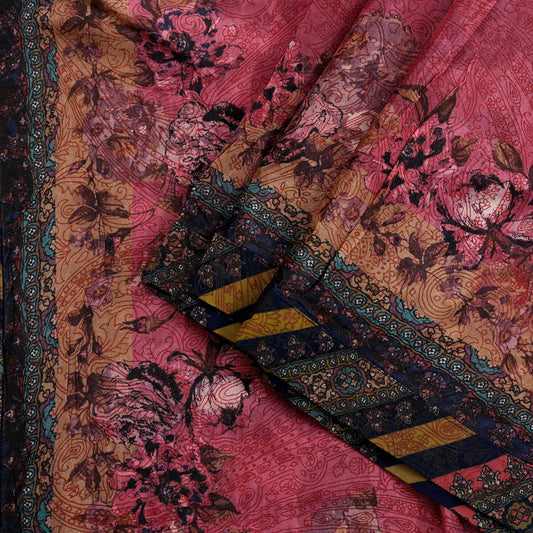 Women Indian Vintage Dupatta Pink Long Stole Pure silk Printed Dupatta Veil Scarves soft Boho Wrap Dressmaking Floral Design