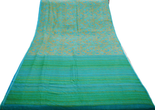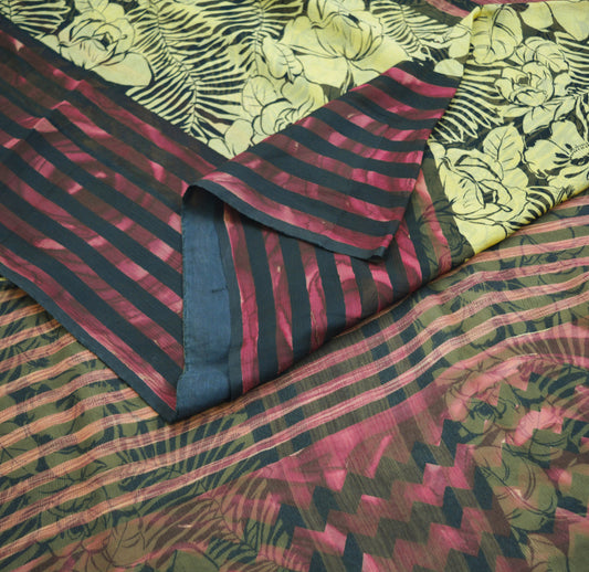 Women Vintage Saree Green & Saffron Pure Georgette Silk Printed Sari 5yd Craft Fabric Sewing Crafting Dress making Quilting Upcycle Used