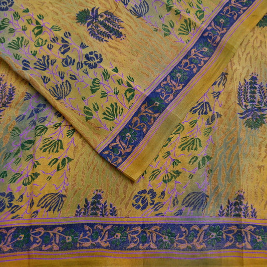 Women Indian Vintage Sari yellow Pure Georgette Silk Printed Sarees Craft Fabric Sewing 5Yd Soft Dress Making Quilting Crafting