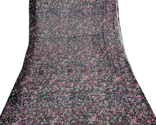 Women Vintage Sari Black Pure Chiffon Silk Printed Saree Craft Fabric Sewing 5Yd Soft Light Sari Dress Making Quilting Crafting Upcycle