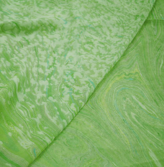 Women Vintage Sari Green Pure Georgette Silk Printed Saree Craft Fabric Sewing 5Yd Soft Light Dress Making Abstract Crafting Quilting