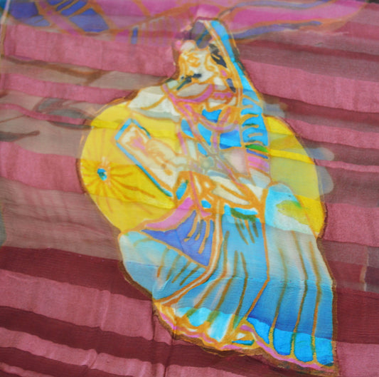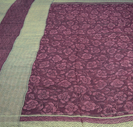 Women Vintage Sari Maroon & Beige Pure Chiffon Silk Saree Craft Fabric Sewing 6Yard Soft Light Sari Dress Making