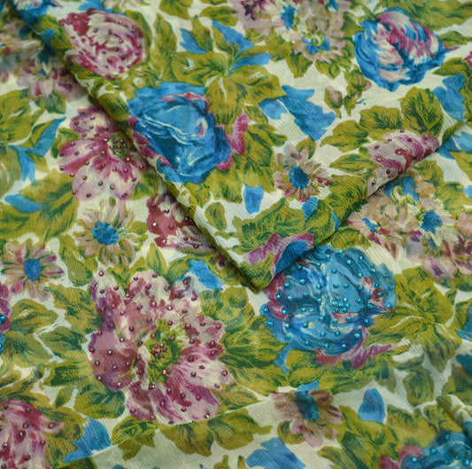 Women Vintage Sari Multi Pure Georgette Silk Printed Saree Craft Fabric Sewing 5Yard Soft Light Dress Making Floral Dress making Crafting