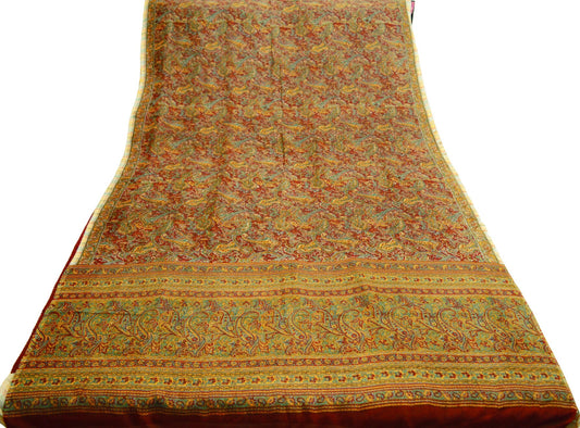 Women Vintage Sari Maroon & Green Pure Georgette Silk Printed Saree Craft Fabric Sewing 5Yard Soft Light Dress Making Floral Zari Border