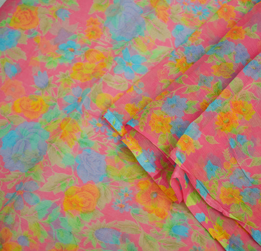 Women Vintage Sari Pink Pure Georgette Silk Printed Saree Craft Fabric Sewing 5Yard Soft Light Dress Making Floral Abstract