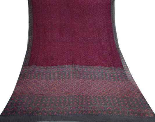 Women Vintage Sari Maroon Pure Georgette Silk Printed Saree Craft Fabric Sewing 6Yd Soft Light Dress Making Floral Quilting Paisley