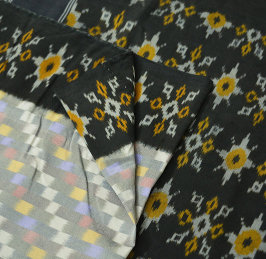 Indian Vintage Gray & Black Pure Silk Hand Woven Ikat Saree Indian Sari Fabric 5Yard Craft Ethnic Premium Saree