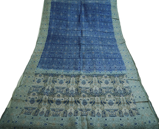 Indian Vintage Gray Pure Silk Printed Saree | 6 Yards | Soft Floral Fabric for Dressmaking, Quilting, Crafting, Sewing & Upcycling