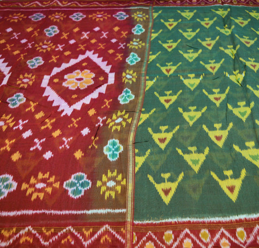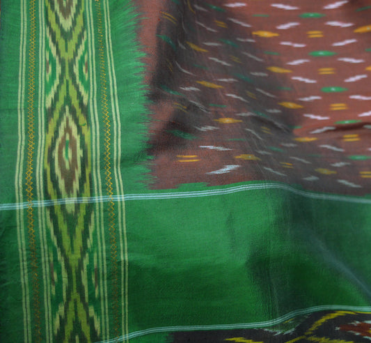 Indian Vintage Green & Maroon Saree Pure Silk Hand Woven Odisha Ikat Patola Indian Sari Fabric 5Yard Zari