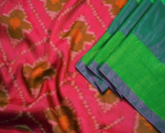 Indian Vintage Green & Pink Saree Pure Silk Patan Patola Hand Woven Ikat Indian Sari Fabric 5Yard Craft Ethnic Zari Border