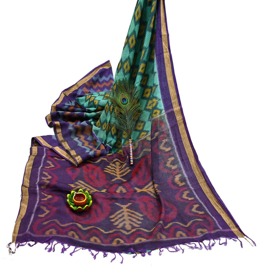 Indian Vintage Green & Purple Dupatta Long Stole Hand woven Sambalpuri Ikat Hijab Pure Silk Scarves Veil Fringes