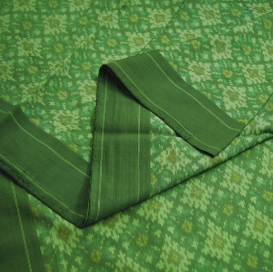 Indian Vintage Green Pure Silk Hand Woven Ikat Saree Indian Sari Fabric 5Yard Craft Ethnic Premium Saree