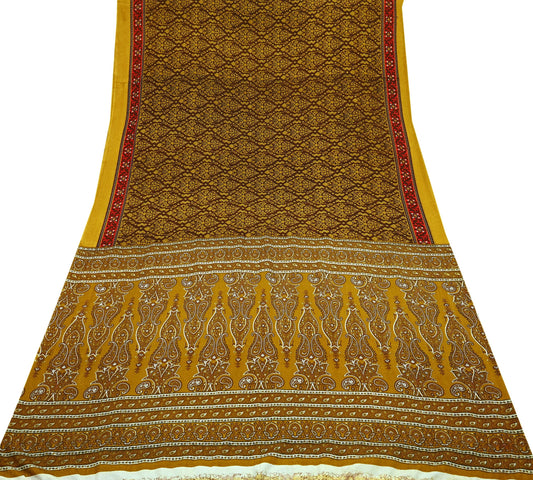 Indian Vintage Green Pure Silk Printed Saree 5 Yards Soft Floral Fabric Dressmaking, Quilting, Crafting, Sewing & Upcycling Dress Making
