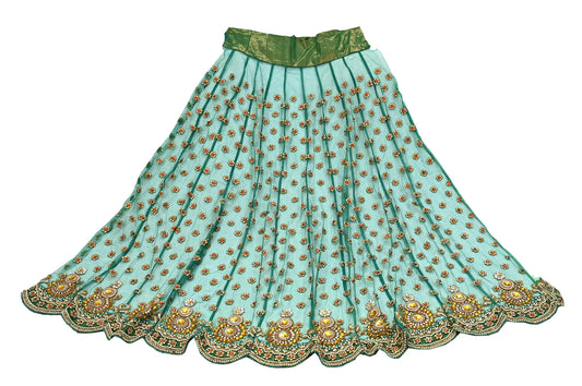 Indian Vintage Green Pure Georgette silk Hand Embroidered Design Fabric 55"X45" Zardozi/Dabka/Zari Crafting Quilting Dress making Crafting
