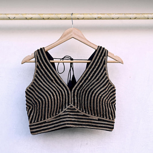 Indian New Black Georgette Hand Embroidered Padded Blouse/Top/Crop M Size Party wear Bollywood