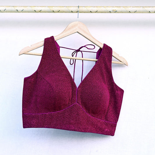 Indian New Maroon Georgette Hand Embroidered Padded Blouse/Top/Crop M Size Party wear Bollywood