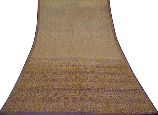 Indian Vintage Heavy Wedding Sari Brown Pure Satin Silk Woven Banarasi Tanchoi Saree 5Yd Craft Fabric Dress making Pre-owned Bridal Sarees