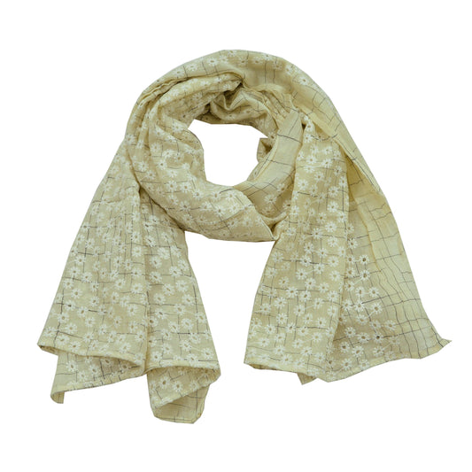 Indian Vintage Ivory Dupatta Long Stole Pure Silk Hand Woven Indian Scarves Veil Scarf Wrap Floral