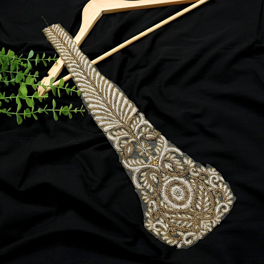 Indian Vintage Ivory Net/Mesh Appliques Set of 1 | Hand-Embroidered Floral Patches with Zardozi,Dabka, Zari,for Craft, Journals