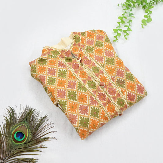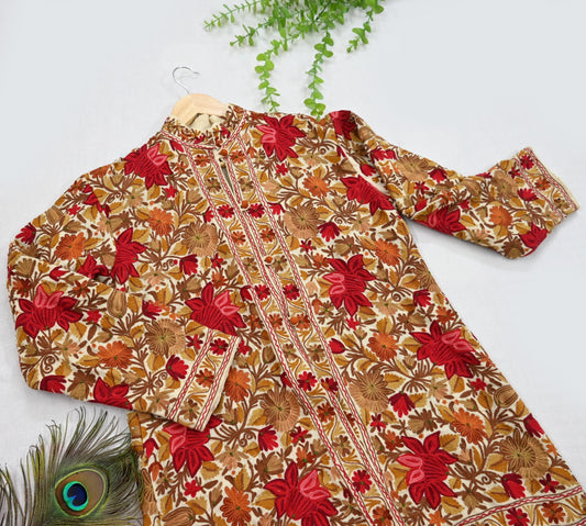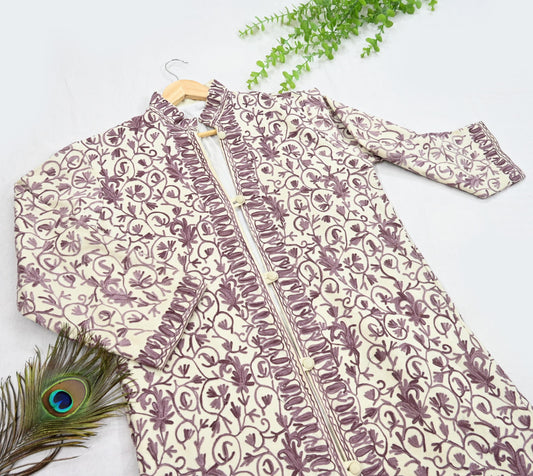 Indian Vintage Ivory Embroidered Kashmiri Coat, Aari Embroidery, Pure Woolen Coat, Boho Jacket For Both Women/Men Indian Coat