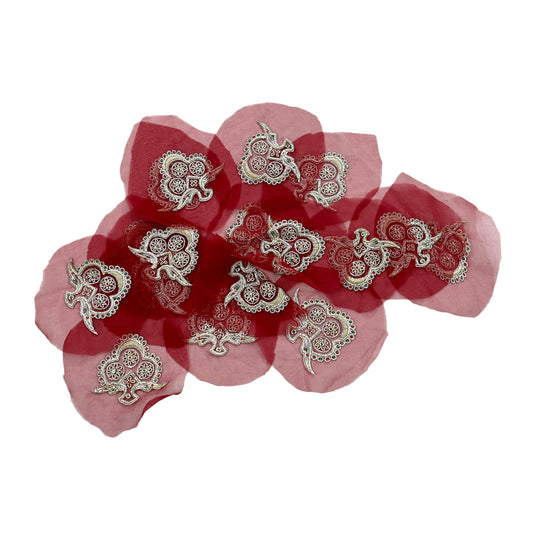 Indian Vintage Magenta Pure Chiffon Silk Appliques Set of 35 | Hand-Embroidered bandhani Floral Patches Zardozi, for Craft, Journals