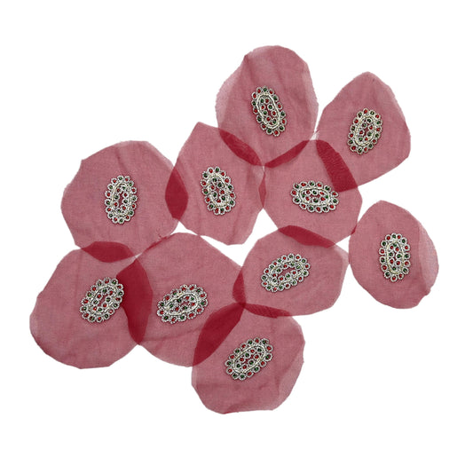 Indian Vintage Magenta Pure Chiffon Silk Appliques Set of 8 | Hand-Embroidered bandhani Floral Patches Zardozi, for Craft, Journals