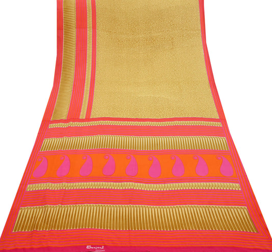 Indian Vintage Multi Pure Crepe Silk Saree | Abstract Print | 5 Yards | Soft Sewing Fabric for Dressmaking, Quilting, Crafting & Upcycling