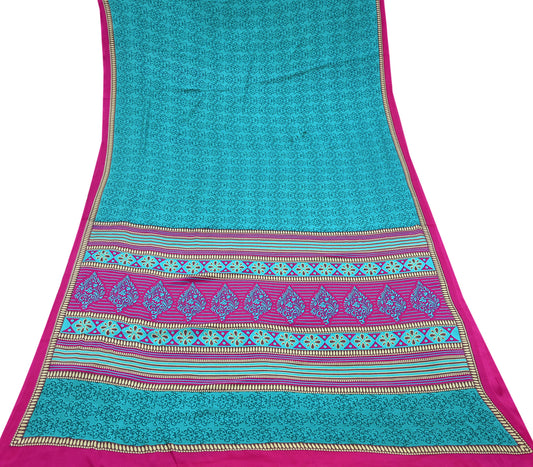 Indian Vintage Moss Crepe Printed Saree Floral Design 5 Yards Soft Craft Fabric for Dressmaking, Décor, Quilting, & Upcycling