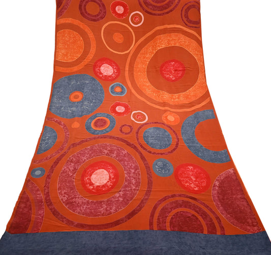 Indian Vintage Multi Artificial silk Digital Printed Saree Geometric 6 Yards Soft Craft Fabric for Dressmaking, Décor, Quilting