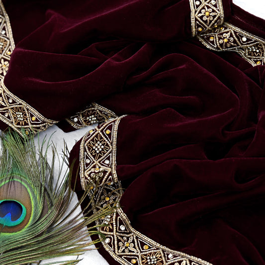 Indian Vintage Maroon velvet Appliques Set of 1 | Hand-Embroidered Floral Patches with Zardozi,Dabka, Zari,for Craft, Journals