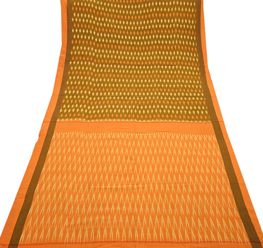 Indian Vintage Orange & Black Saree Pure Cotton Hand woven Sambalpuri Ikat Sari Fabric 5Yard Ethnic