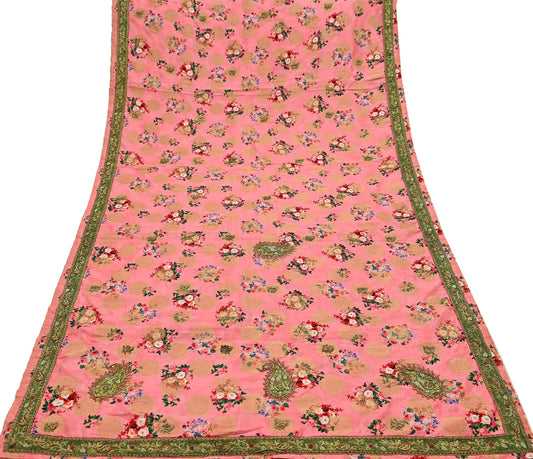 Indian Vintage Peach & Pink Dupatta Pure silk Long Stole Hand Embroidered Scarves Floral Design Stole Veil Wrap Zari gota
