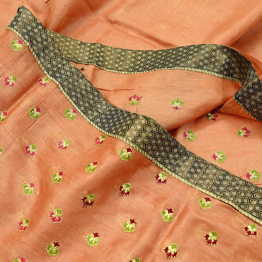 Indian Vintage Peach Sari Border Hand Embroidered Indian Craft Trim Lace Sewing Sari Ribbon Pure Crepe silk Zardozi/Dabka Zari