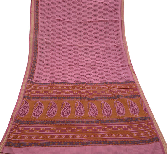 Indian Vintage Pink Saree Printed 100% Pure Cotton Sari Craft Fabric 5Yd Sewing Sarong Wrap Floral Dress making Quilting Crafting
