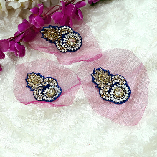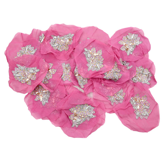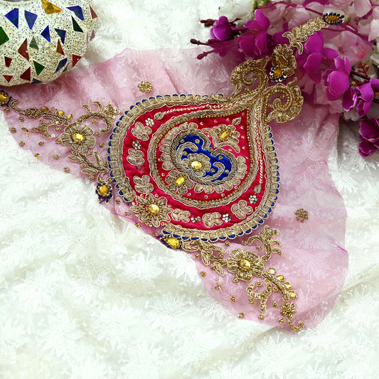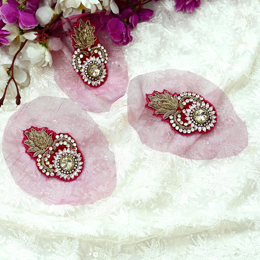 Indian Vintage Pink net Appliques Set of 1 | Hand-Embroidered Floral Patches with Zardozi,Dabka, Zari,for Craft, Journals