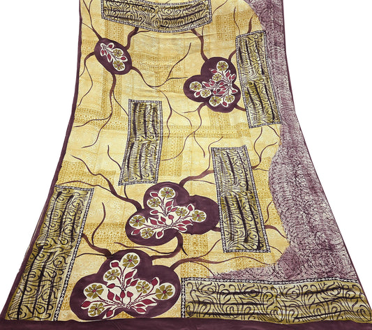 Indian Vintage Purple & Brown Saree 100% Pure Georgette Silk Printed Sari Sewing 5yd Craft Soft Dress Designing for Crafting Floral