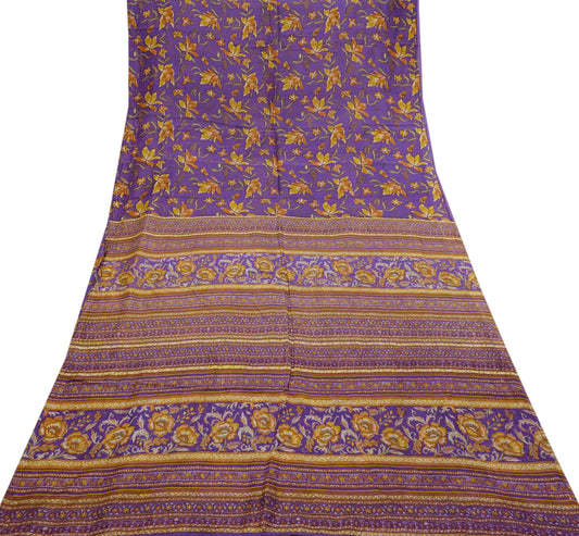 Indian Vintage Purple Saree 100% Pure Silk Printed Sari Craft Fabric 5yd Sewing Soft Dress Designing for Crafting ,Decor Quilting Upcycle