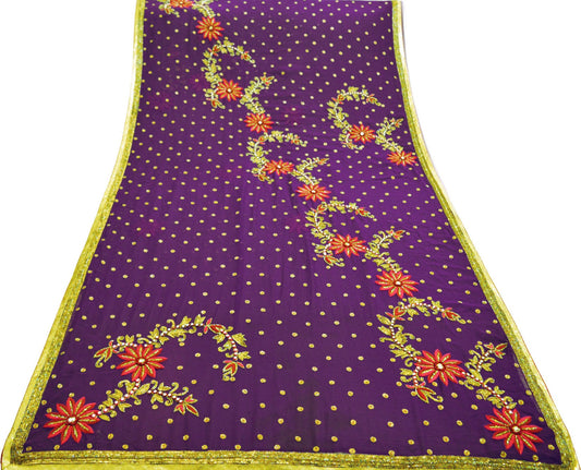 Indian Vintage Purple Saree Pure Georgette Silk Hand Beaded Sari Fabric 5Yd Sewing Soft Ethnic Dress making Crafting Bollywood Party Wear