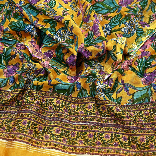 Indian Vintage Saffron Saree Blend Cotton Printed Sari Craft Fabric 5Yd Sewing Sarong Wrap Floral Dress Making Crafting Quilting Upcycle