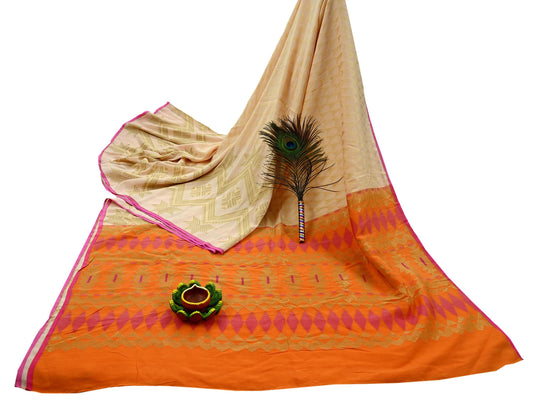 Indian Vintage Sarees Rusty & Beige 100% Pure Silk Hand Woven Sari Craft Fabric 5Yd Ethnic Floral Zari Dress making Crafting Upcycle
