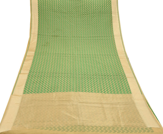 Indian Vintage Sari Beige Pure chanderi Silk Block Printed Sarees 5Yd Craft Zigzag Zari Border Ethnic Dress Making Crafting Quilting