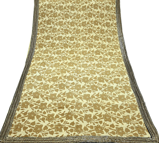 Indian Vintage Sari Beige 100% Pure Silk Printed Saree Fabric 6yd Sewing Craft Fabric DressMaking Floral Zari