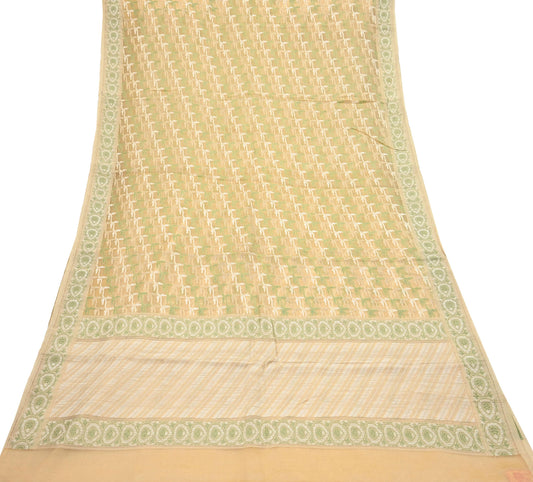 Indian Vintage Sari Beige Pure Cotton Hand Woven Sarees Craft Fabric 5yd Ethnic Paisley Crafting Upcycle Quilting Dress Making Quilting