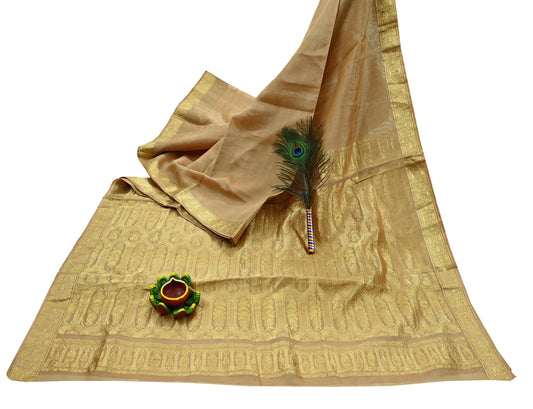 Indian Vintage Sari Beige Pure Organza Silk Hand Woven Sarees 5Yd Zari Border Ethnic Craft Fabric Bollywood Sarees Quilting Crafting Upcycle