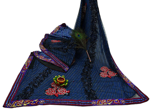 Indian Vintage Sari Black & Blue Pure Georgette Silk NetHand Beaded Sarees Fabric 6Yd Sewing Ethnic With Matching Unstitched Blouse Fabric